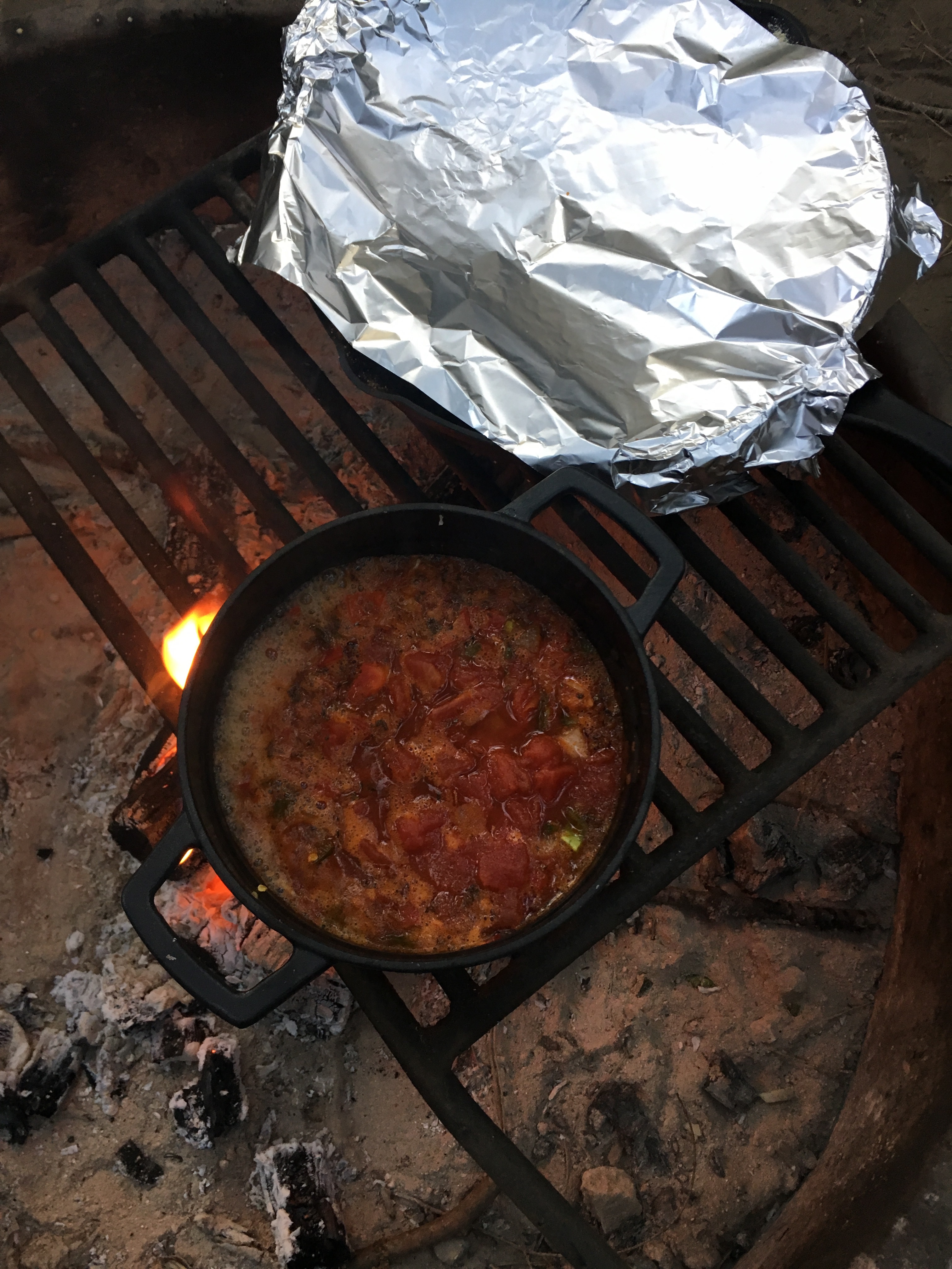 6. Move the pot away from the heat towards the edge of the campfire grill
