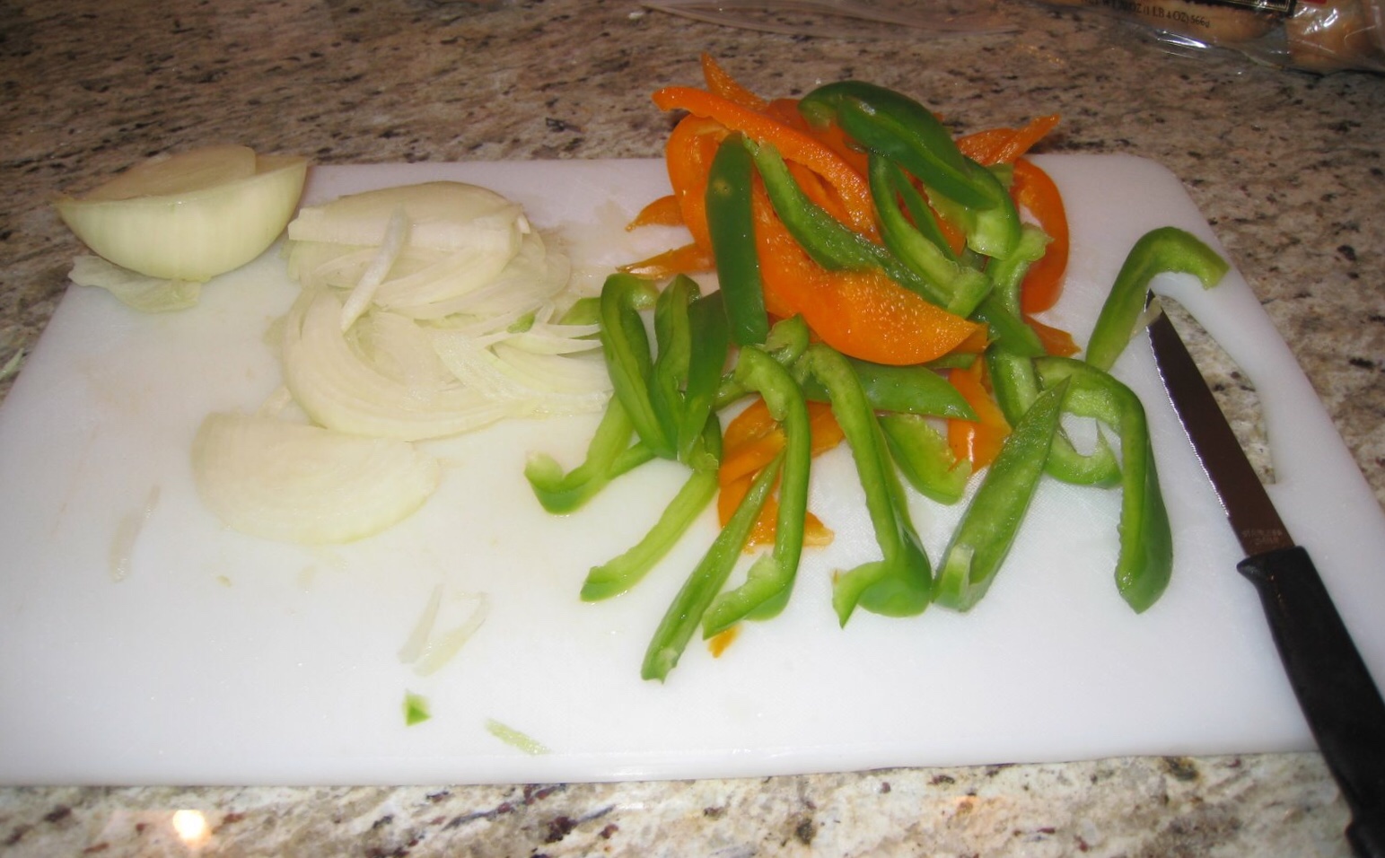 - Slice up the onion, bell peppers and mushrooms (if using)