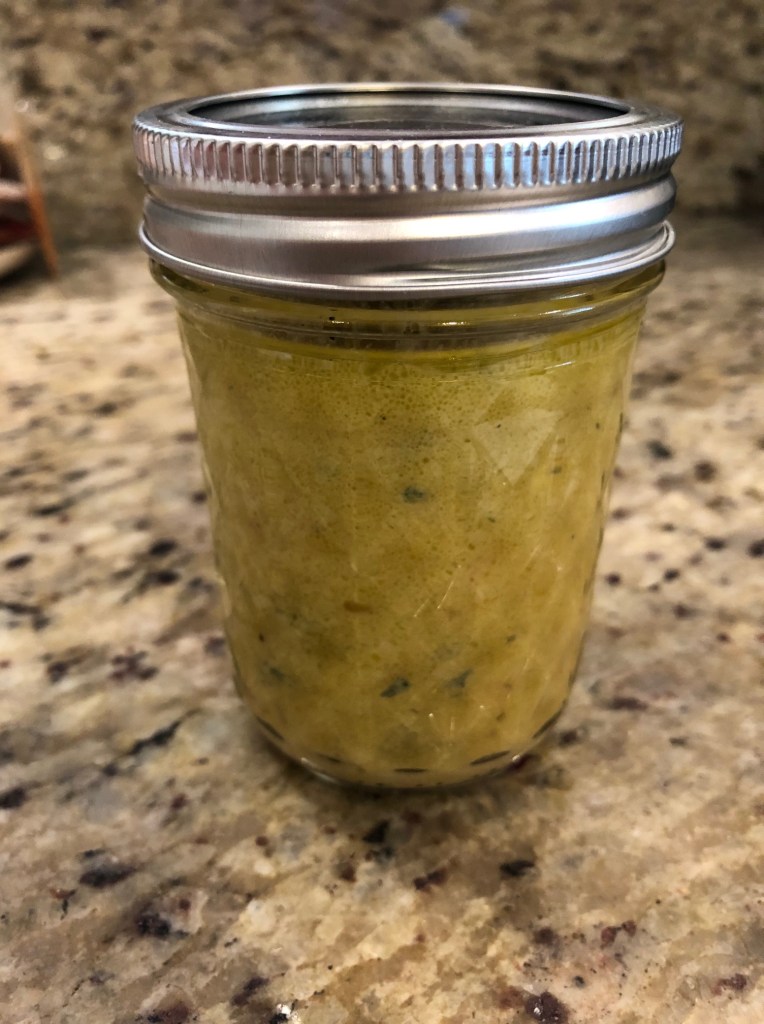 ** One note on this dressing – when refrigerated, it will harden. Before use, let the dressing sit out at room temperature for a bit to loosen back up. Or run mason jar under warm water. Once it loosens up, just give the mason jar a good shake to combine!