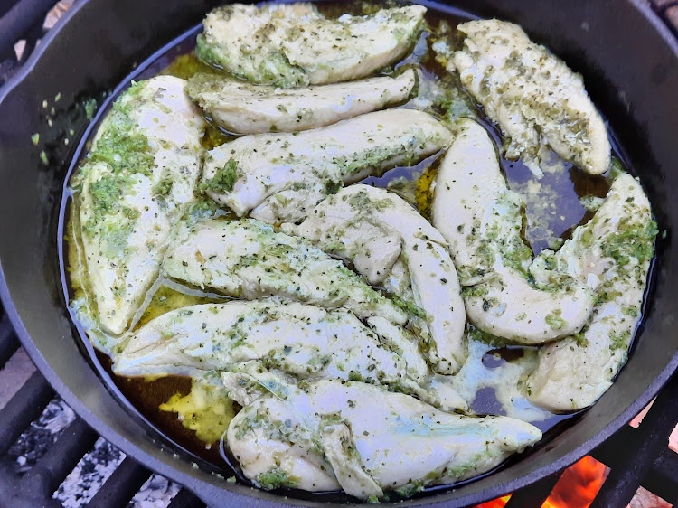 - Pour marinade over sliced boneless skinless chicken breasts (1/4 – 1/2 lb per person) in a ziplock bag