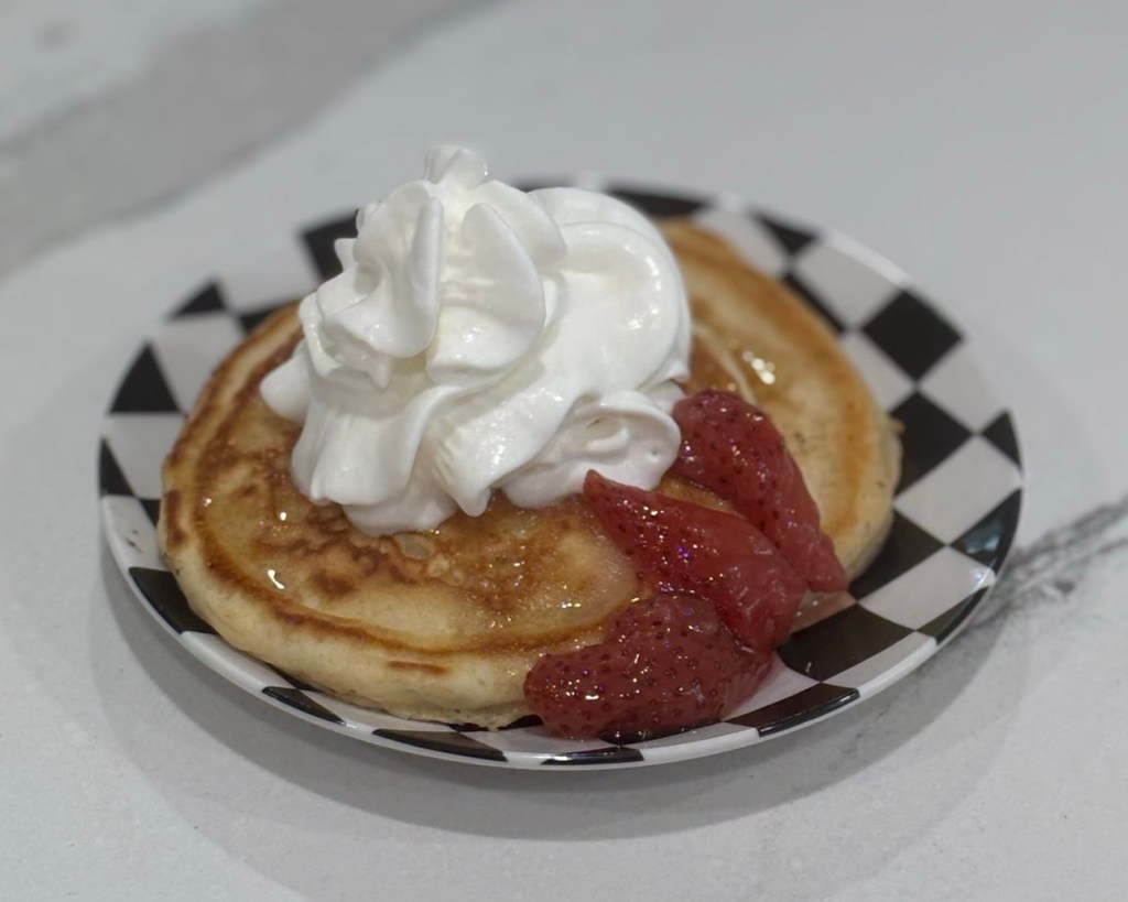 8. Top pancakes with butter, fruit, maple syrup or whatever your heart desires!